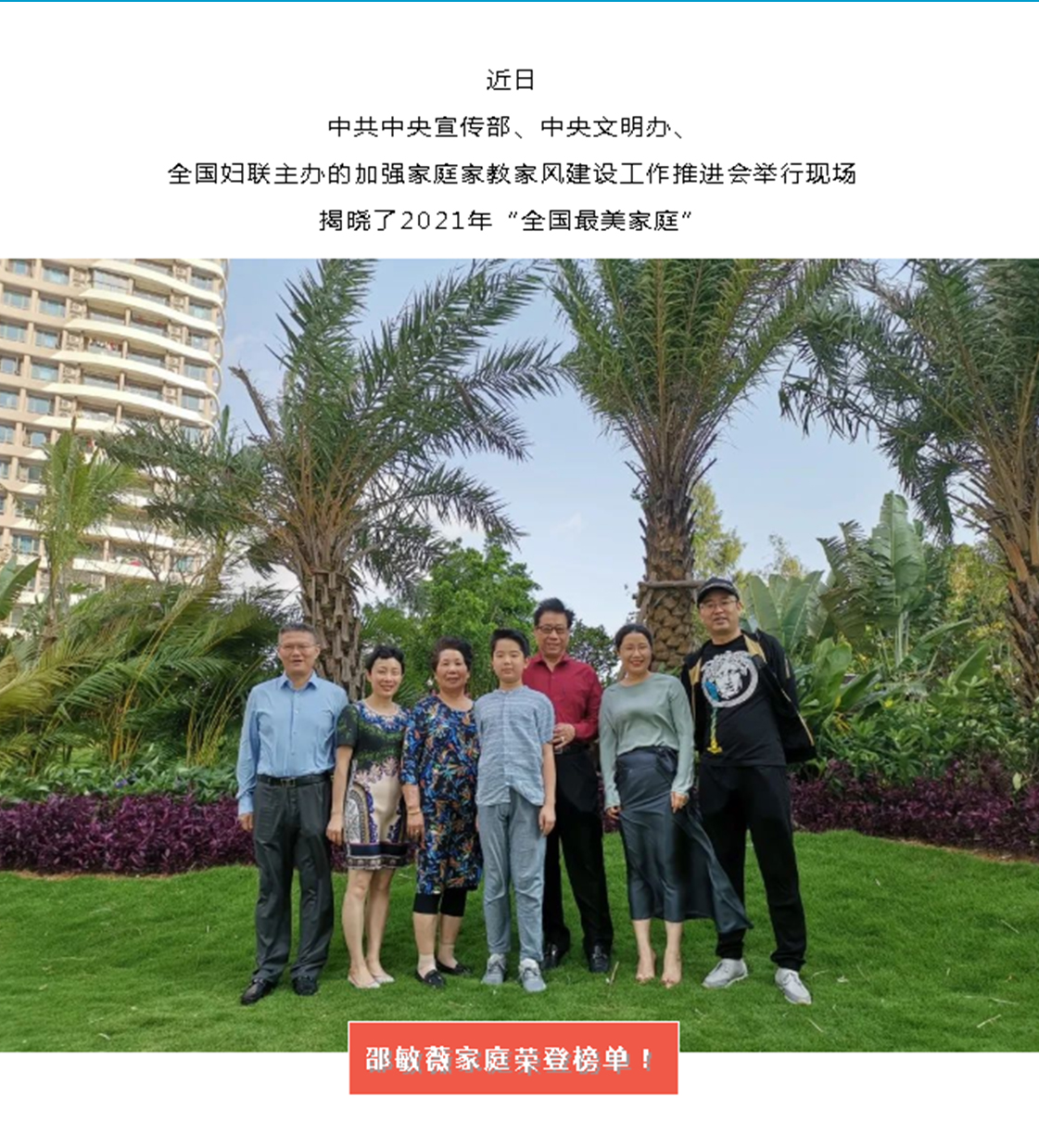 熱烈祝賀董事長(cháng)邵敏薇一家獲評2021年全國“最美家庭”