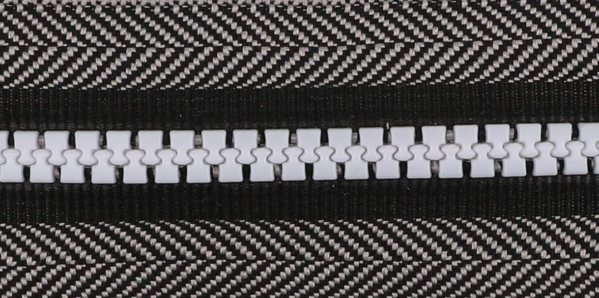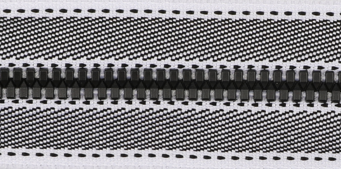 彩帶拉鏈的織法工藝,特別是有些彩帶效果,相比常規布帶布邊強度略低,較為松散,且彩帶層和原色層,因經(jīng)緯關(guān)系,存在輕微的透底現象,彩帶寬度尺寸無(wú)法做到完全統一。