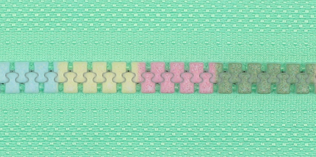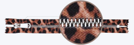 此拉鏈采用熱轉印工藝,直接將印花效果印在樹(shù)脂拉鏈鏈牙及布帶上,讓熱印效果更加有立體感;整個(gè)熱轉印效果不會(huì )因鏈牙與布帶不在統一維度上產(chǎn)生不匹配隱患。